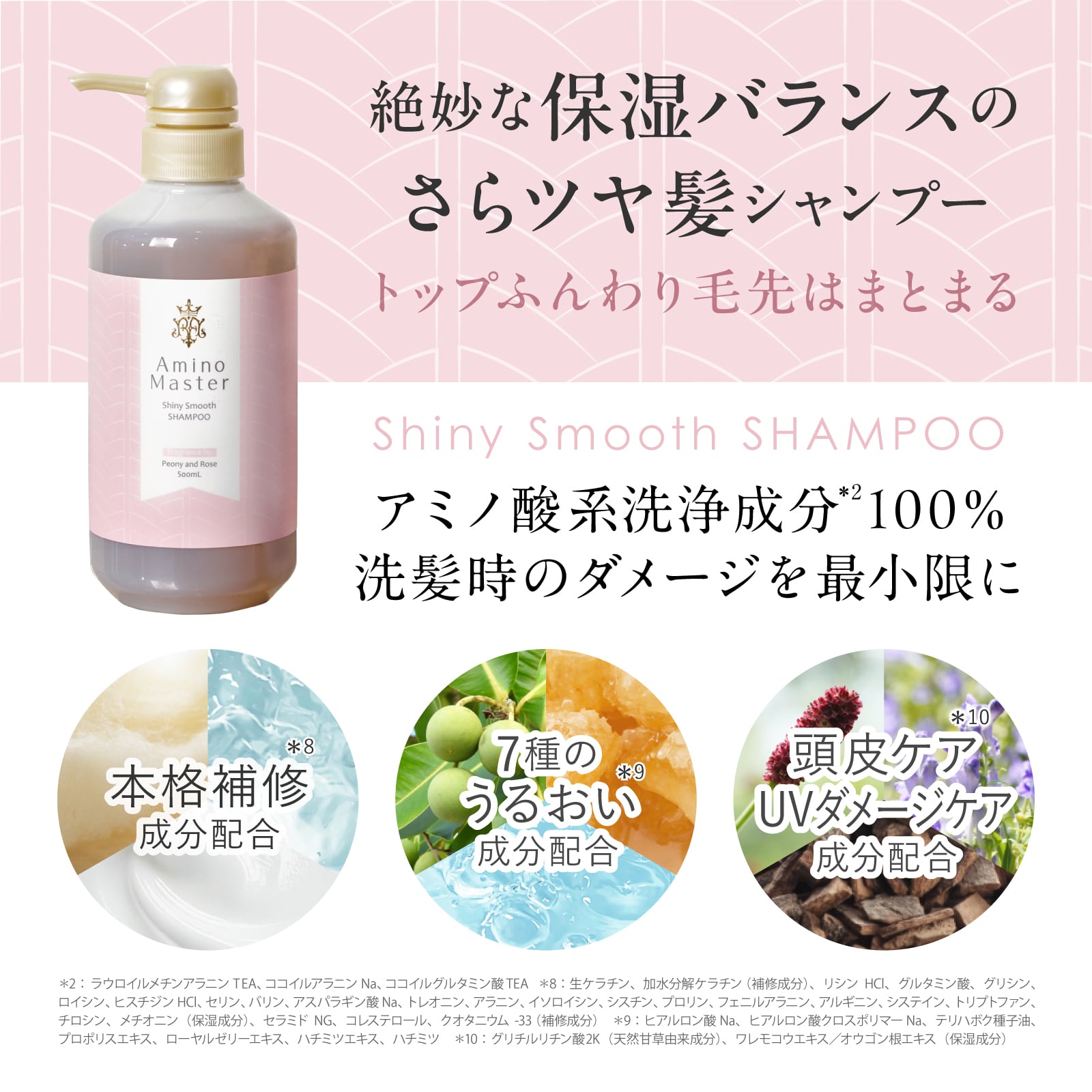 *髪を主に構成する【19種類のアミノ酸※2】配合(保湿成分)で洗髪後もしっとりなめらかな指通りに