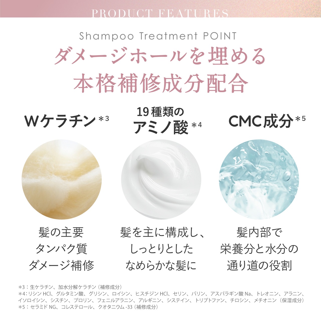 *髪内部で栄養分と水分の通り道となる【CMC成分】配合